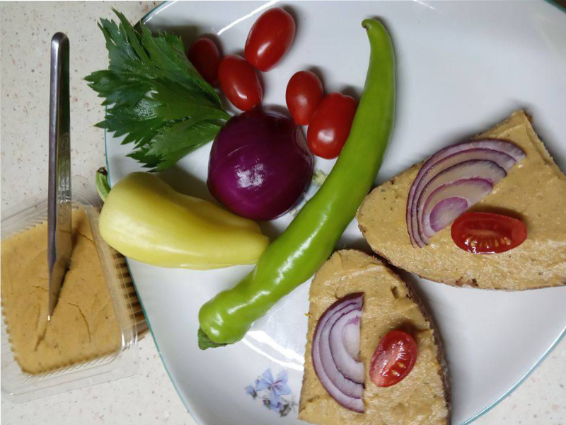hat óra előtt még enni akar valamit Alanyunk, az említett pástétomot kapja, sok-sok zöldséggel.