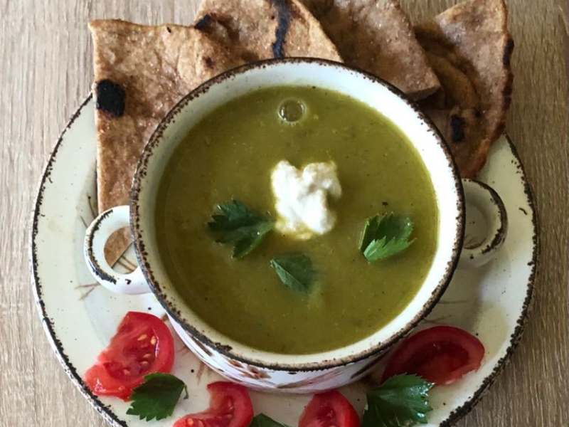 - Ebédre karalábé krémleves, növényi tejföllel, tönkölylepénnyel. A levesben 2/3-ad karalábé, 1/3
